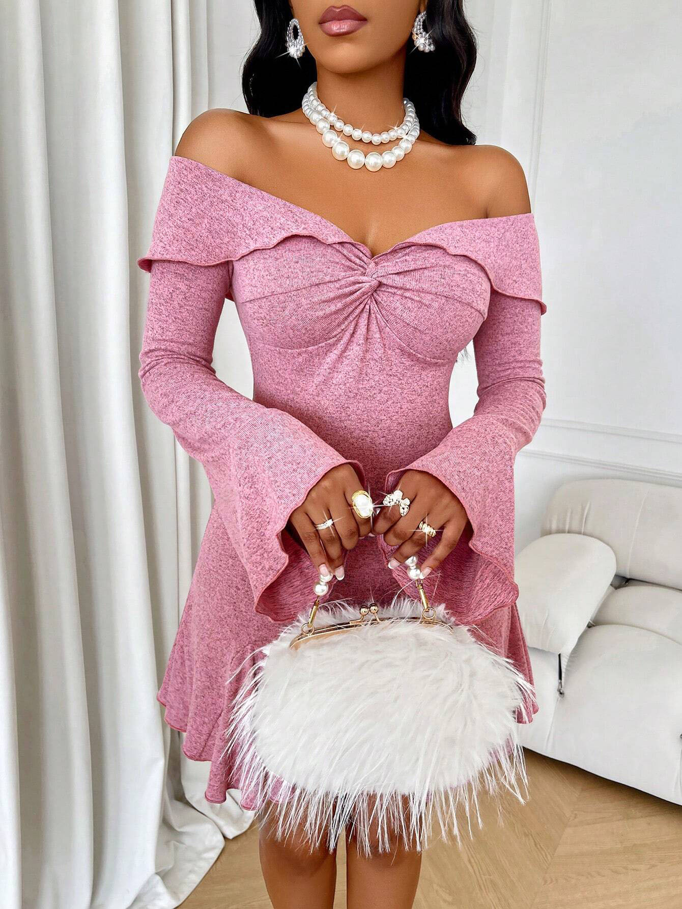 Autumn And Winter New Women's Sexy Off-shoulder Bell Sleeve Short Party Dress