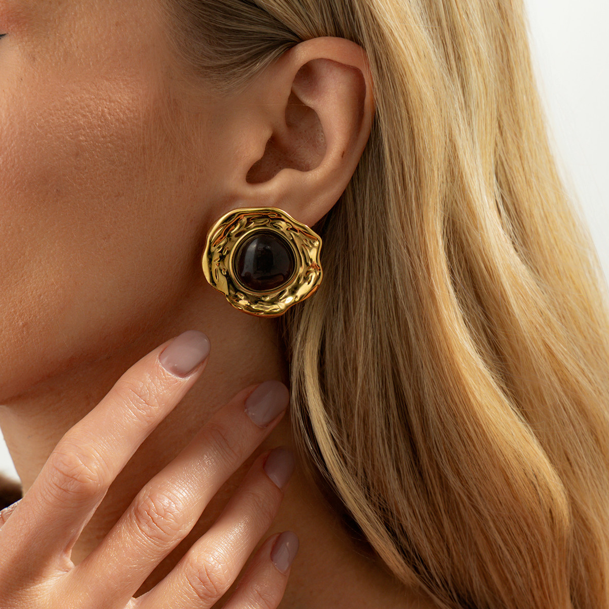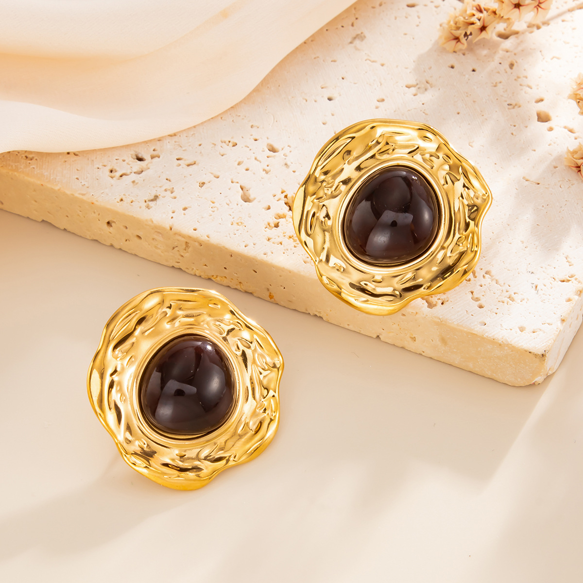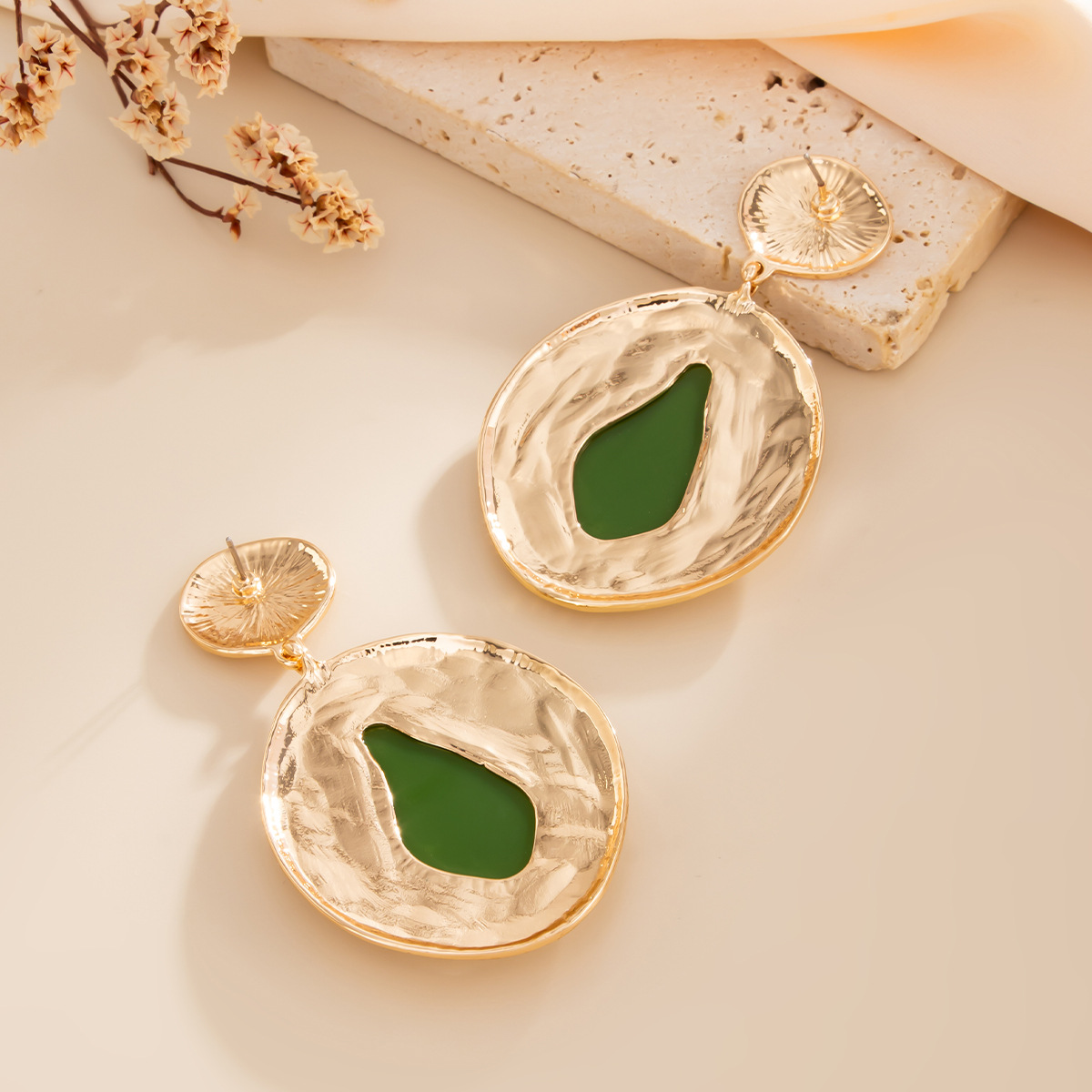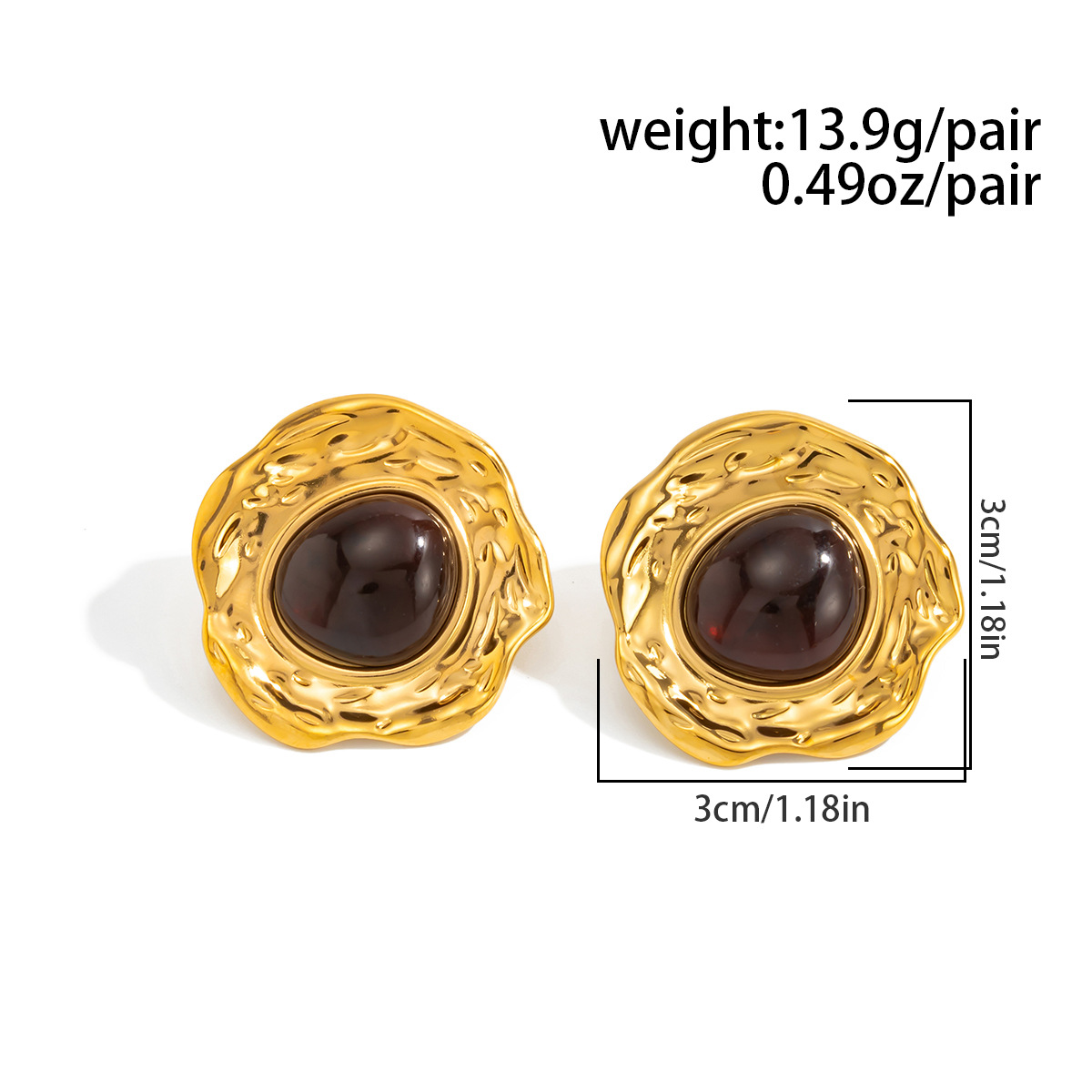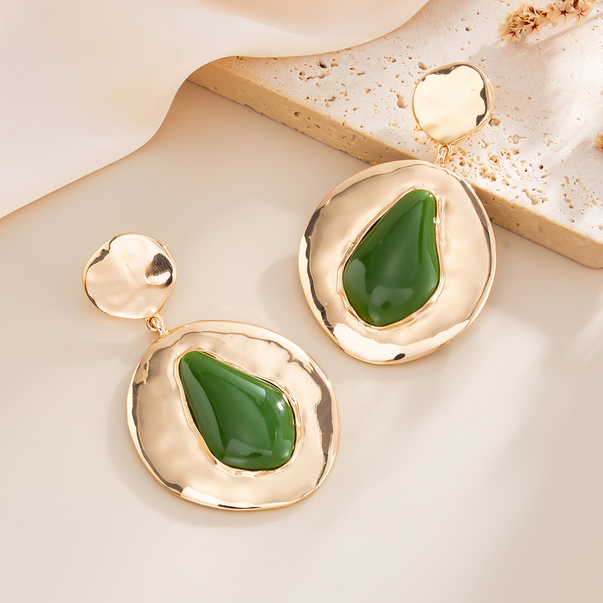 Geometric Alien Circle Inlaid Gemstone Earrings