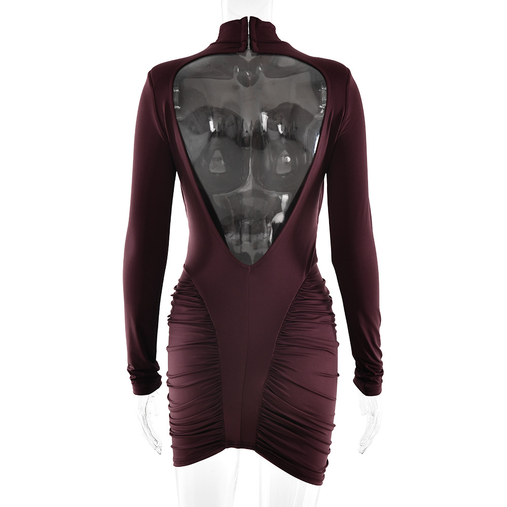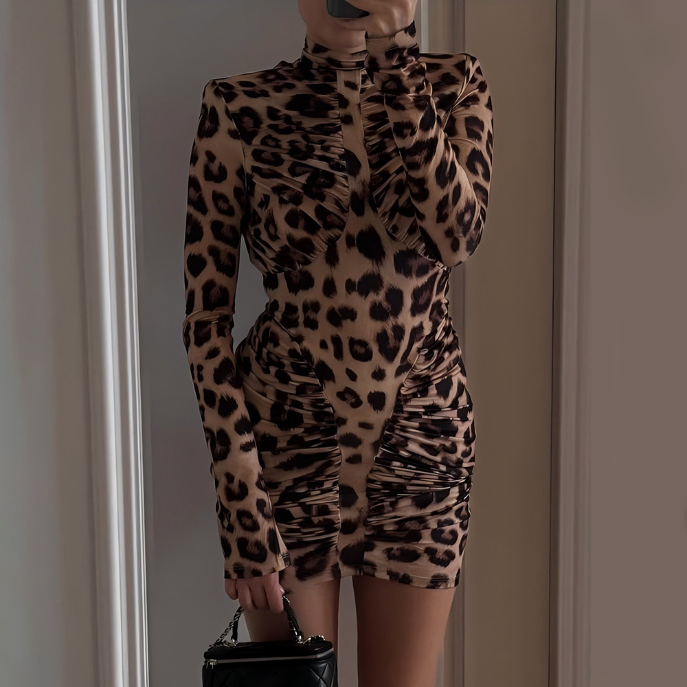 High-neck Leopard Print Tight Backless Bodycon Dress