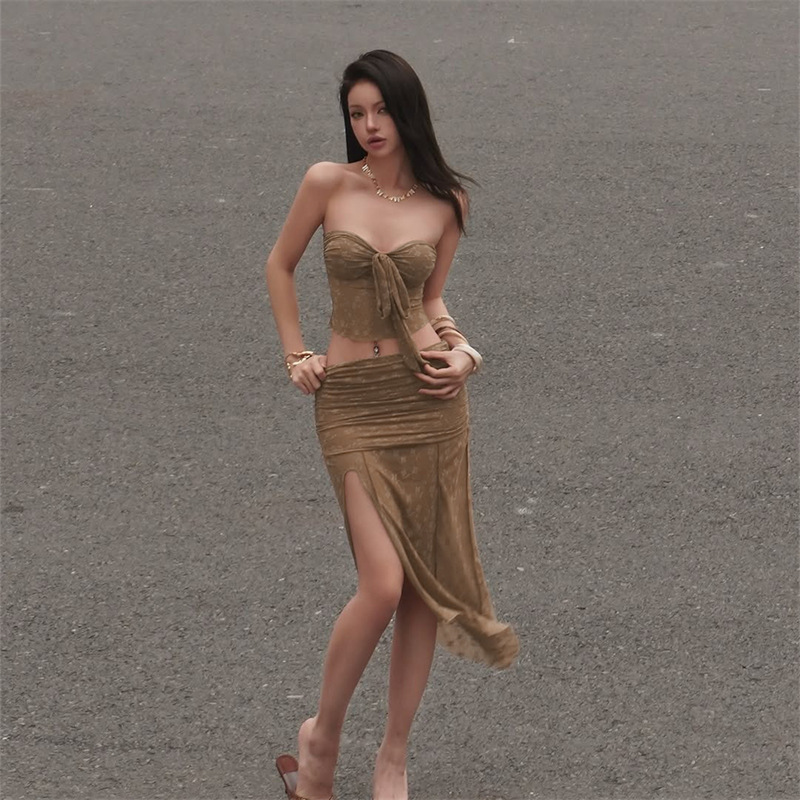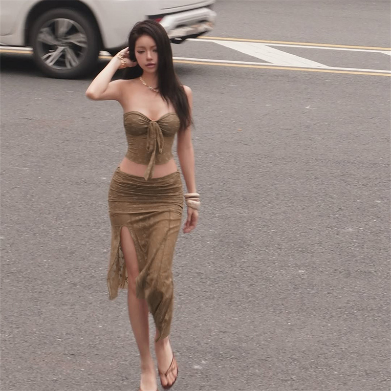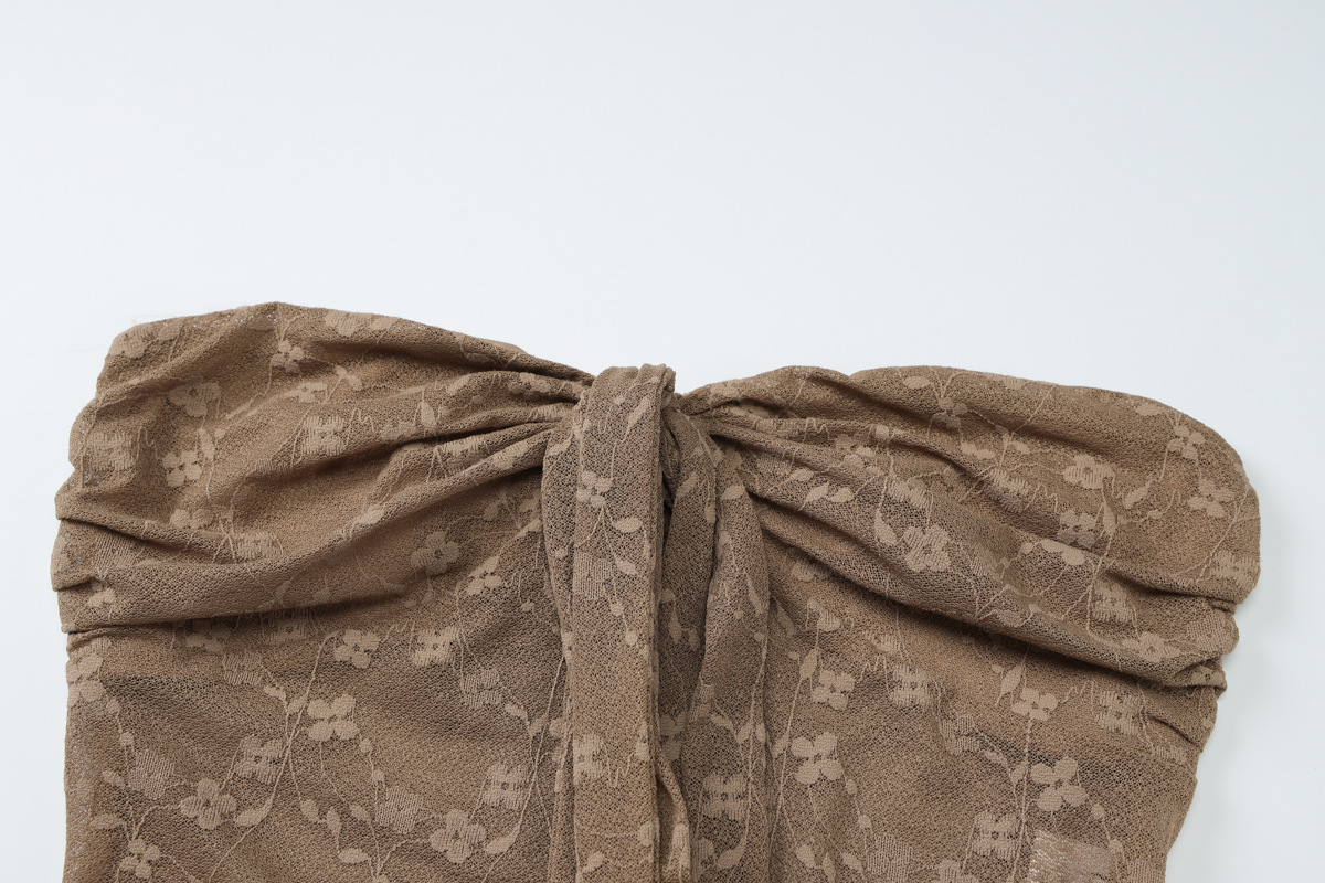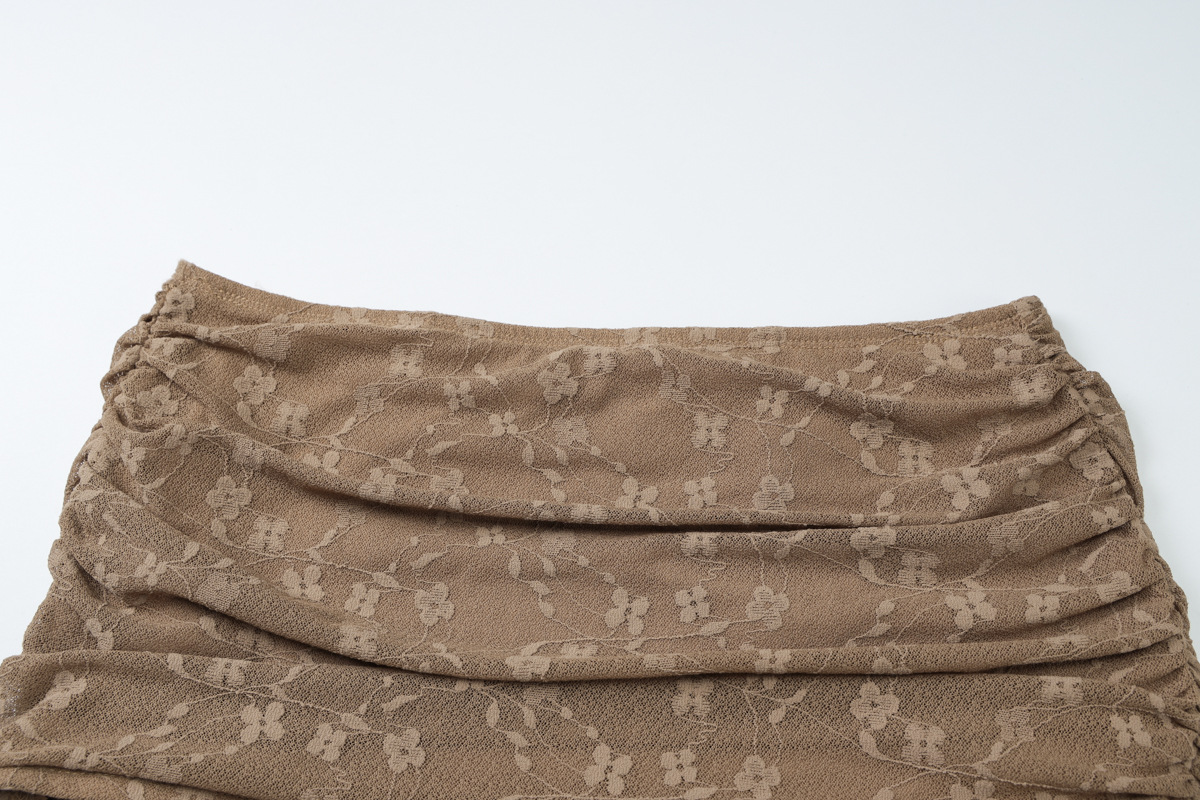 Nylon Lace Bandeau Irregular Mid-length Wrap Skirt