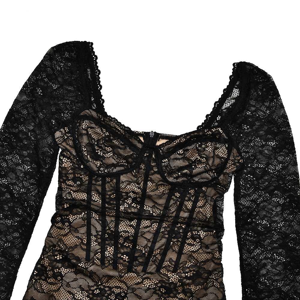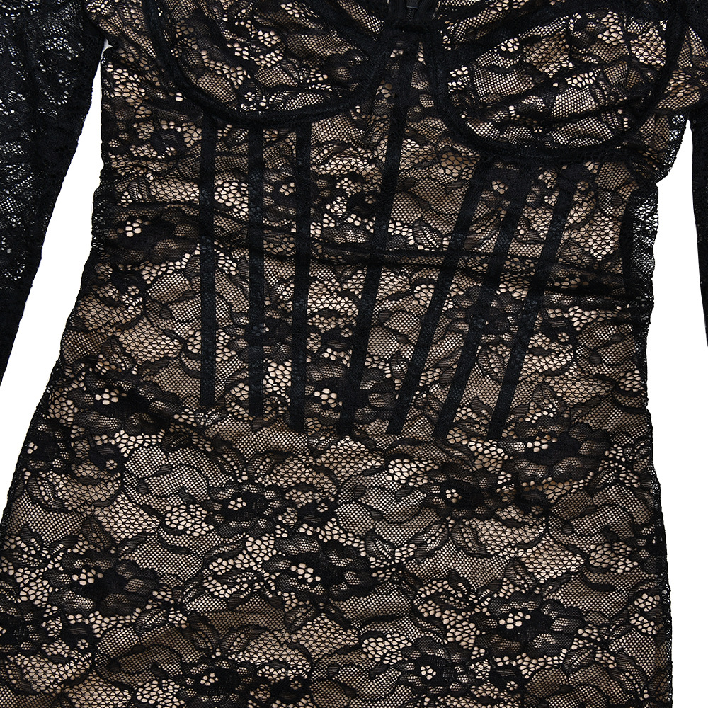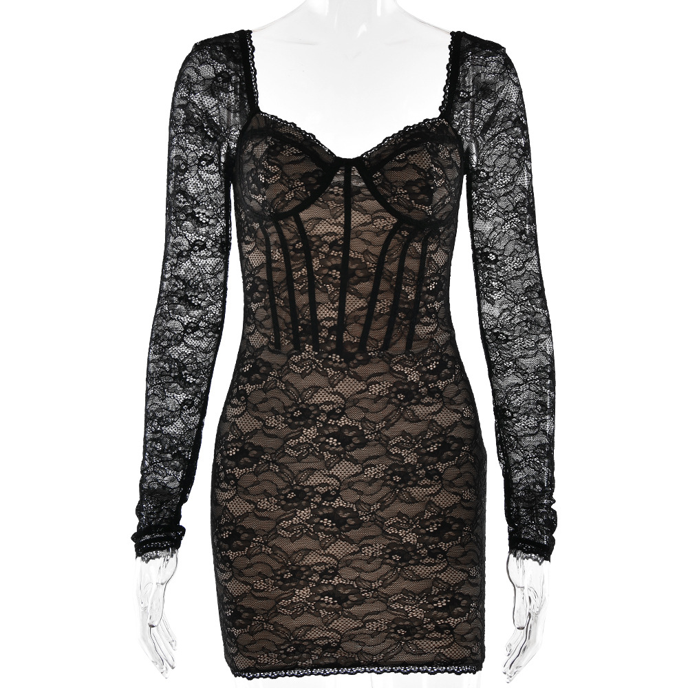 Sexy V-neck Long Sleeve Lace Dress