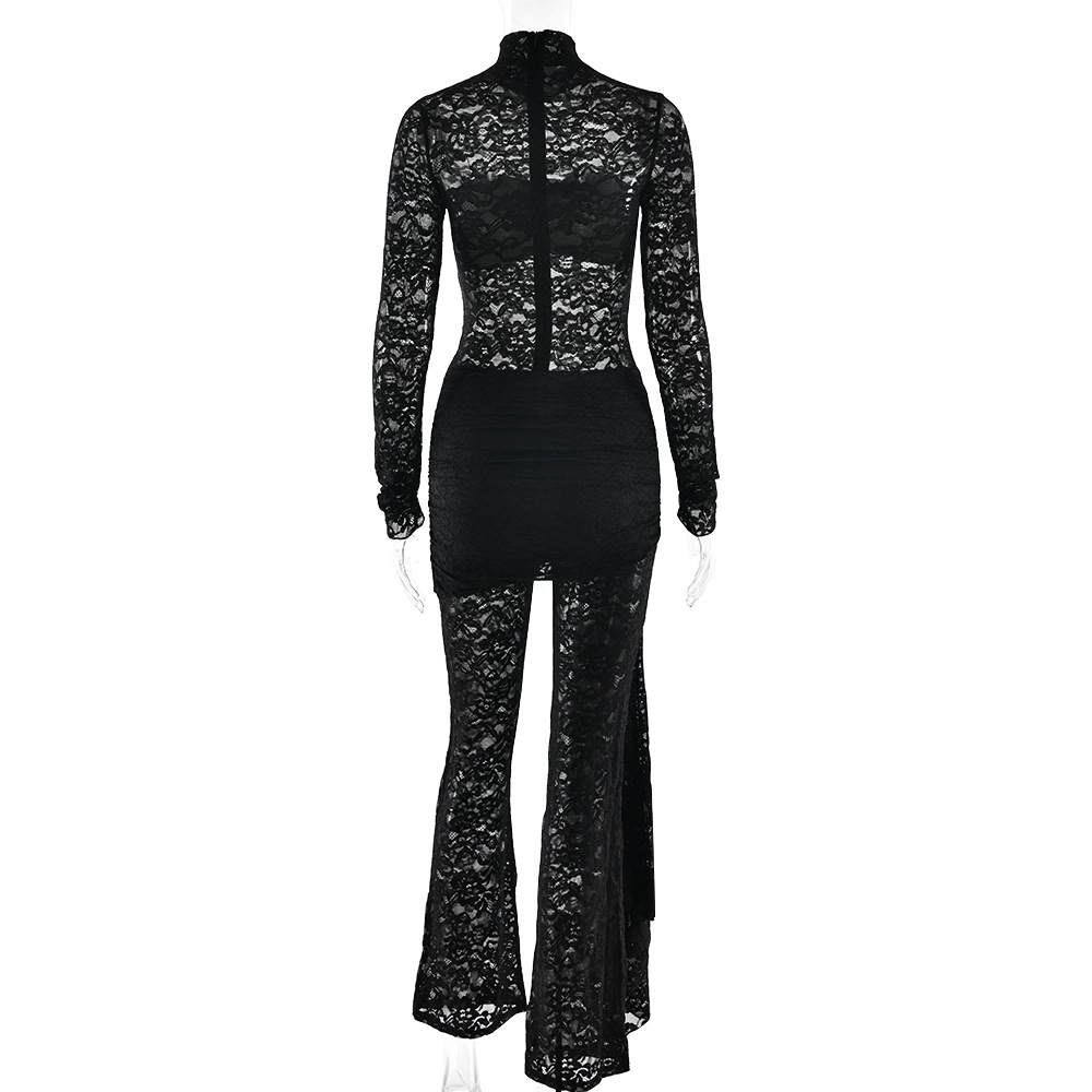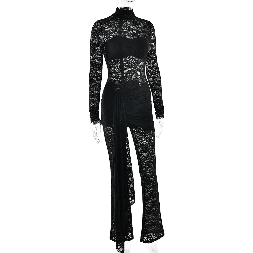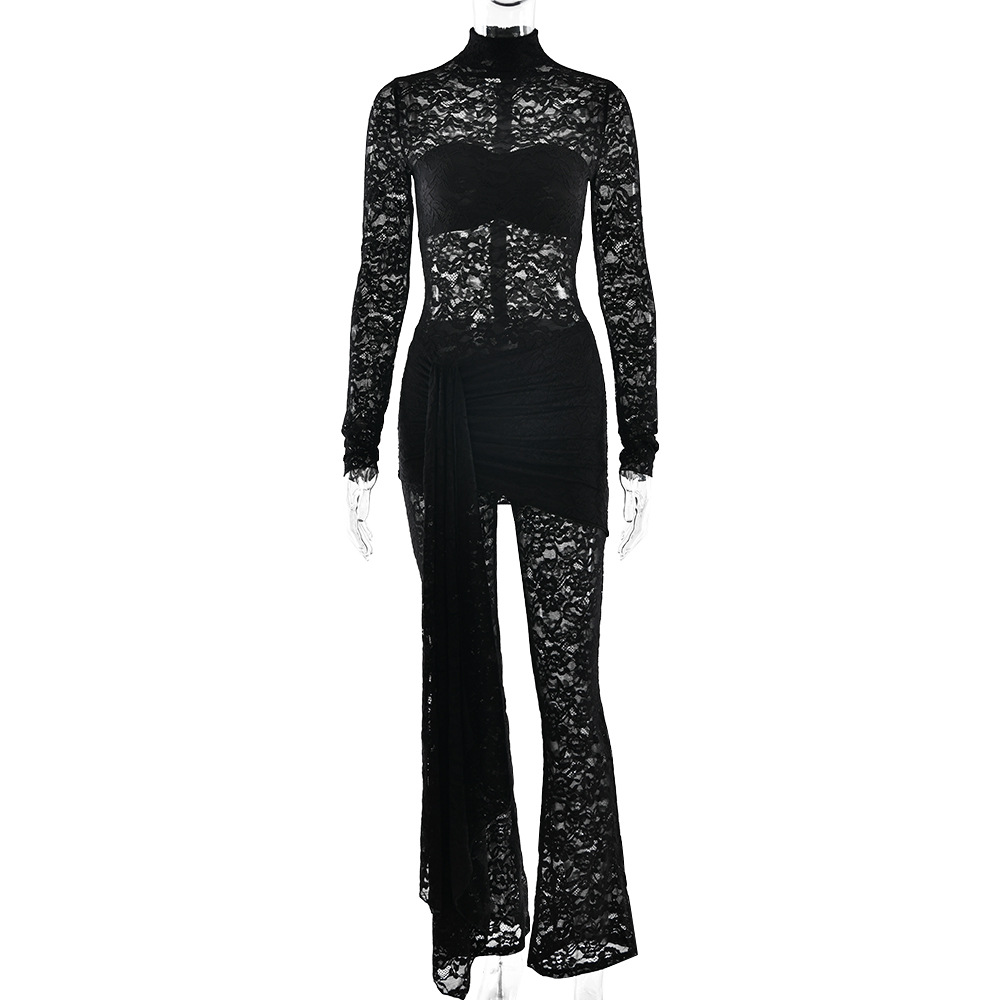 Sheer Lace Sexy Ribbon Slim Jumpsuit