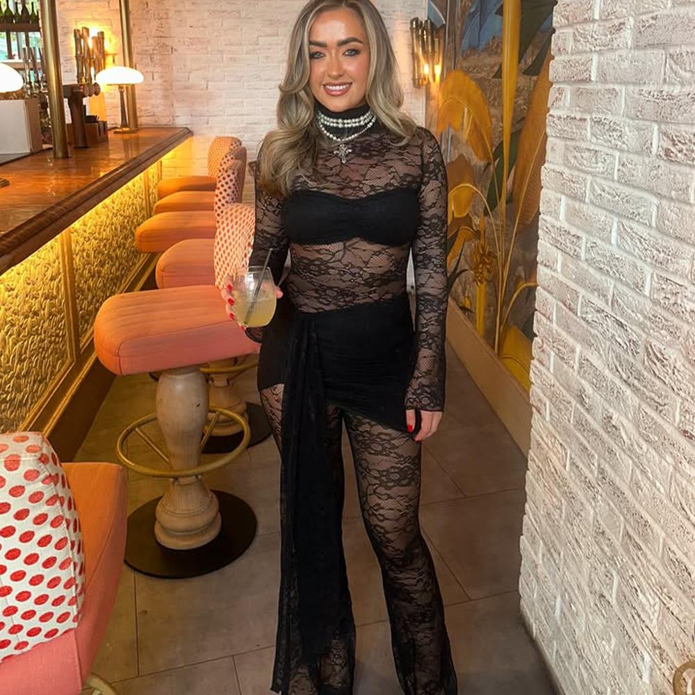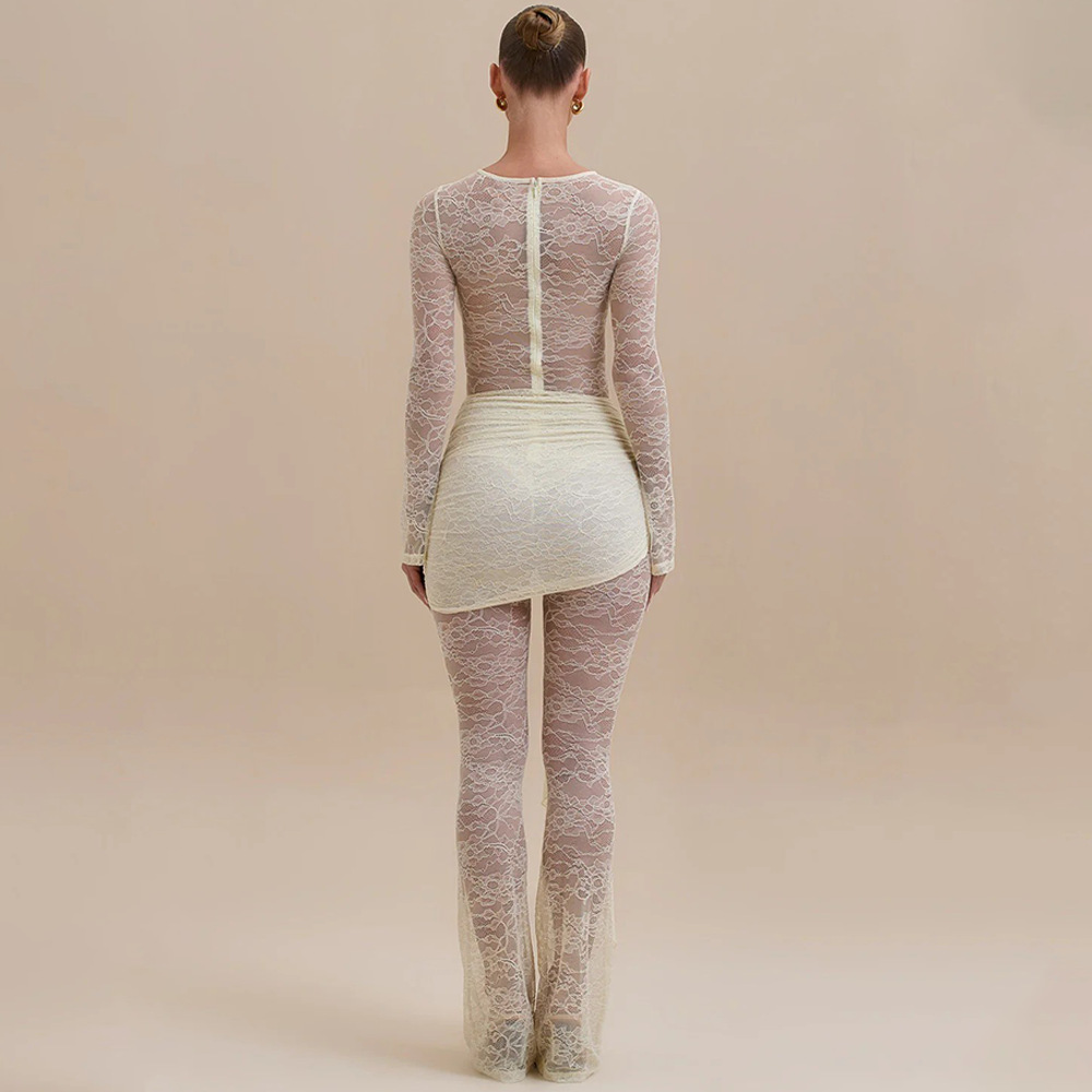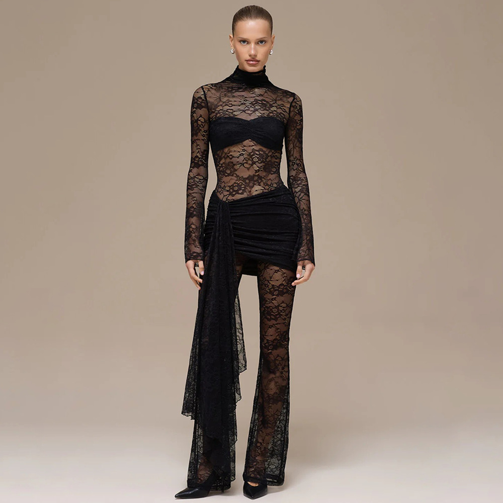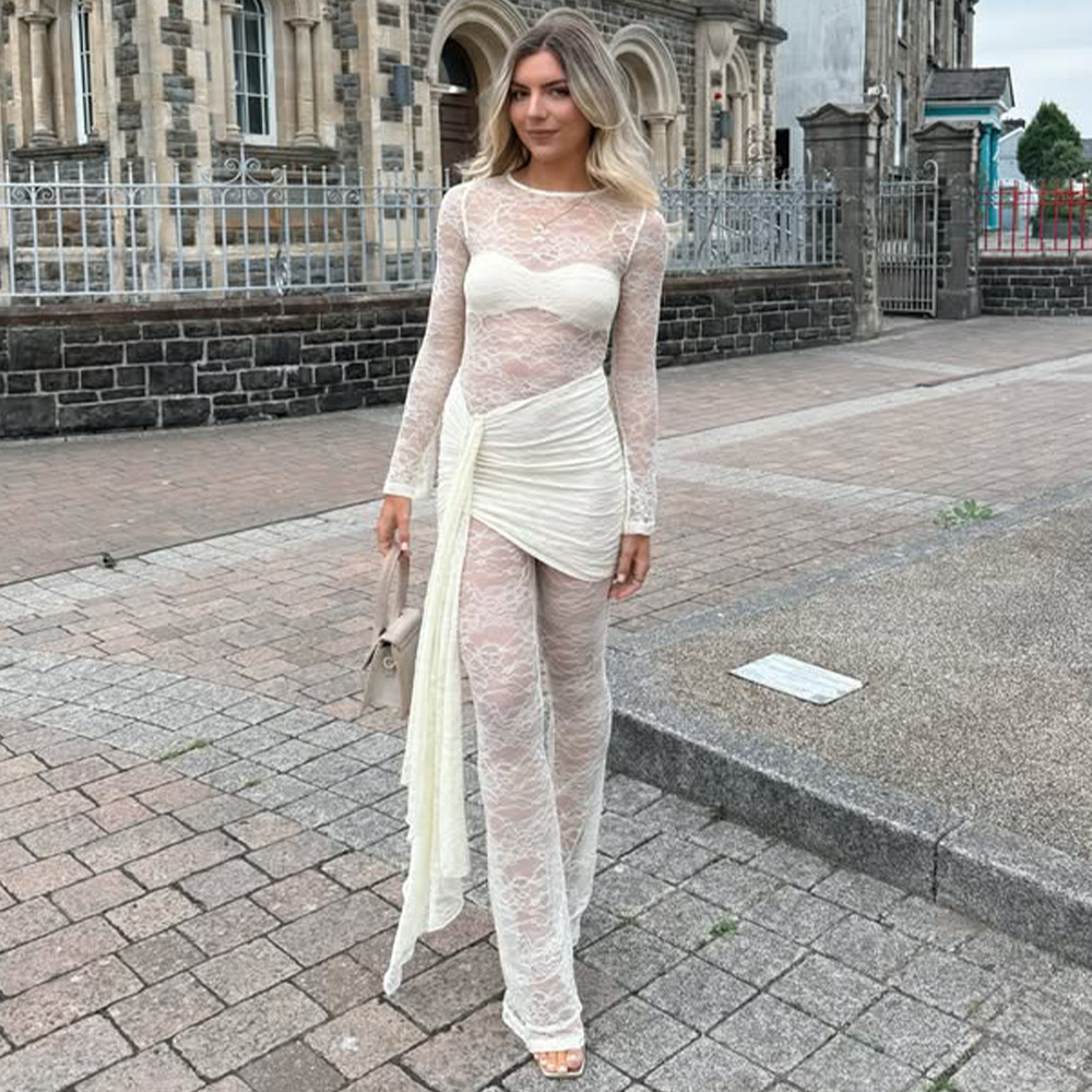 Sheer Lace Sexy Ribbon Slim Jumpsuit