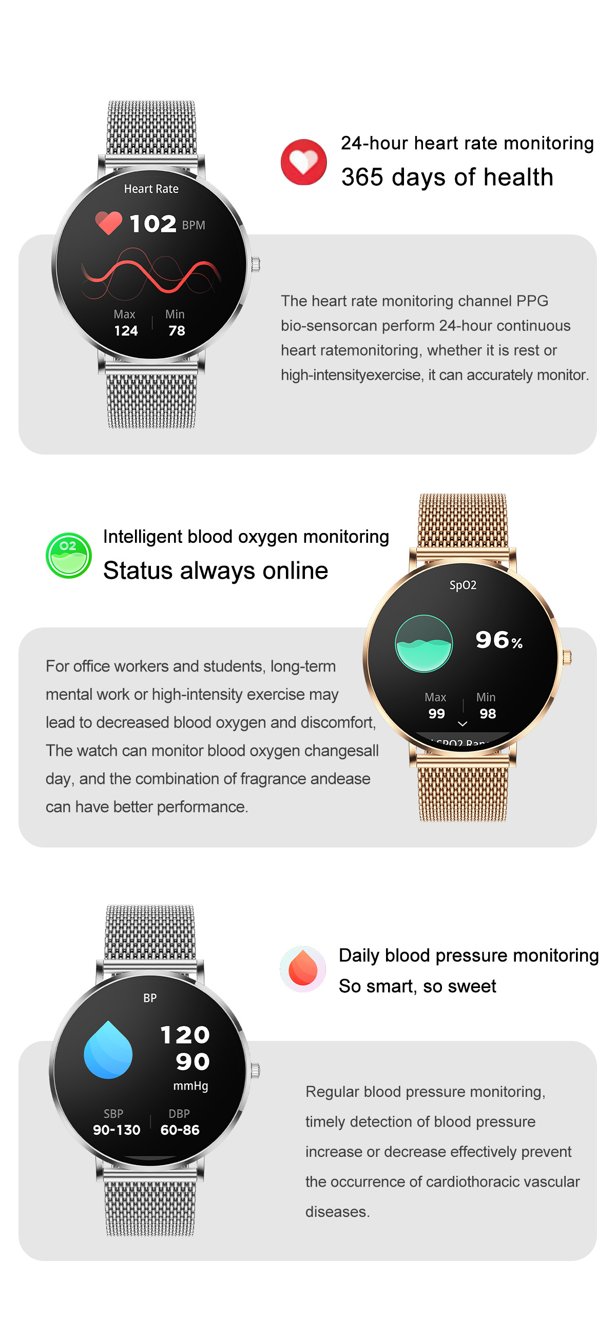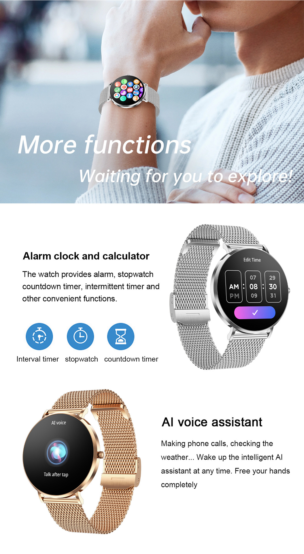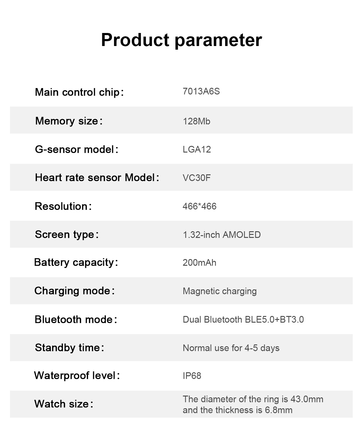 Function: Waterproof, photography, step counting, heart rate monitoring, social entertainment, Bluetooth calling, intelligent reminder, remote selfie